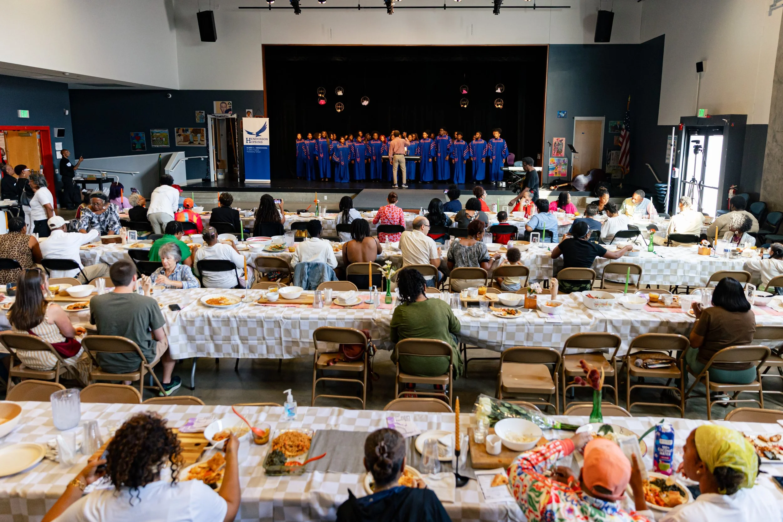 We adapted our pop‑up model for the unveiling of our community‑led mural honoring Henrietta Lacks. The celebration featured live jazz from Baltimore trumpeter Brandon Woody and Juilliard alumni members - Jivan Ramesh and Katherine Ella Wood via a family‑style meal from local partners, a muralist talk and storytelling. It fused art, music and food to create a deeply local yet globally informed experience and drew hundreds of attendees to East Baltimore.